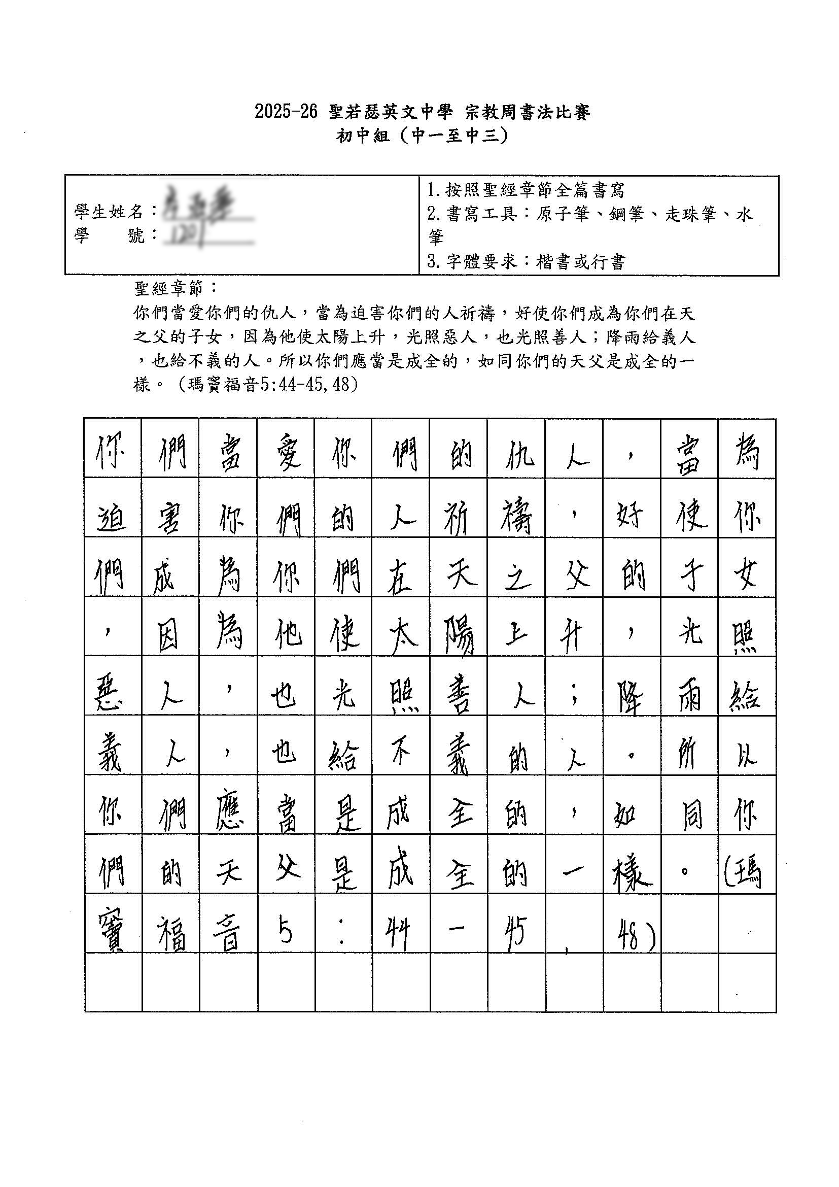 2025-2026 宗教周書法比賽